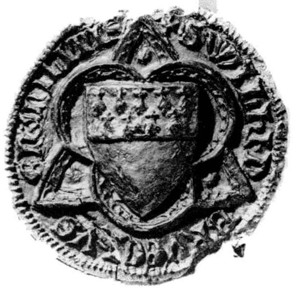 Rechts het zegel van Agnes de Cock van Waardenburg op 22 juli 1415. Diameter 25 mm. Bron: Archiv Schloss Haag, Urk.