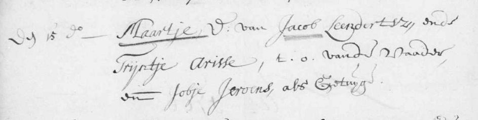 5 Arent Maartensz Groen, gedoopt 22 juni 1738 te Zandvoort (get: Ewout Aelberts in plaats van de vader ten haringh, Marijtje Cornelisz), overleden 1738-1743