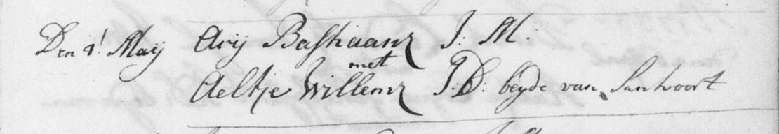 5 Bastiaan Arijsz Schuijten, gedoopt 18 oktober 1739 te Zandvoort (get: Stijntje Bastiaan)