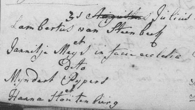 Ondertrouwd op 14 juli 1780 en gehuwd op 31 juli 1780 voor het gerecht (#) en RK Kromme Elleboog (#) te Amersfoort met